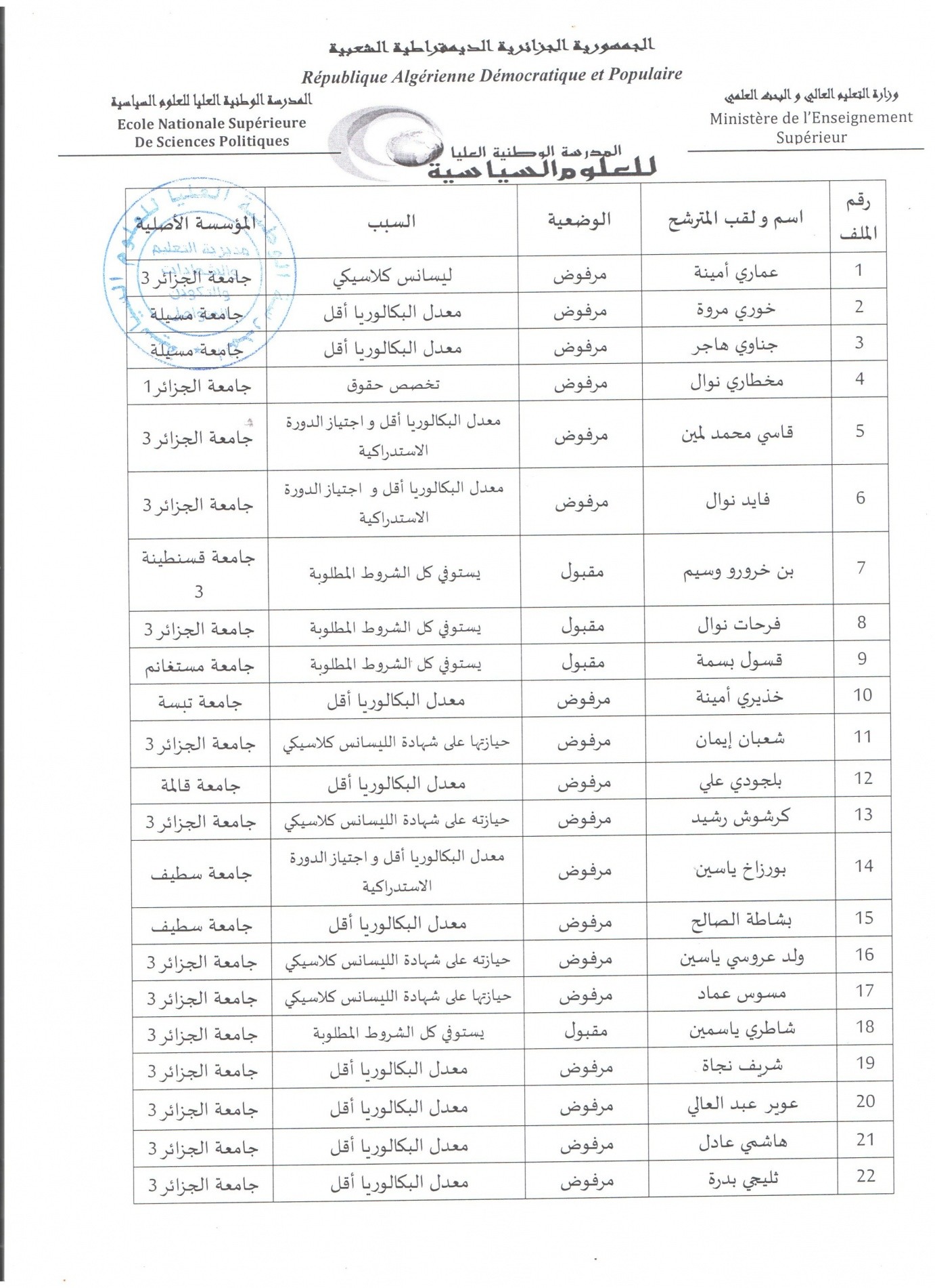 الرئيسية/محضر دراسة ملفات المترشحين خارج المدرسة الوطنية العليا للعلوم السياسية للالتحاق بالمسابقة الوطنية بالطور الثاني - دورة 24 جوان 2019-/photo-944 photo-944